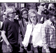 bearing slogans like peg and lori, april 29, 2000 crowd alongside the